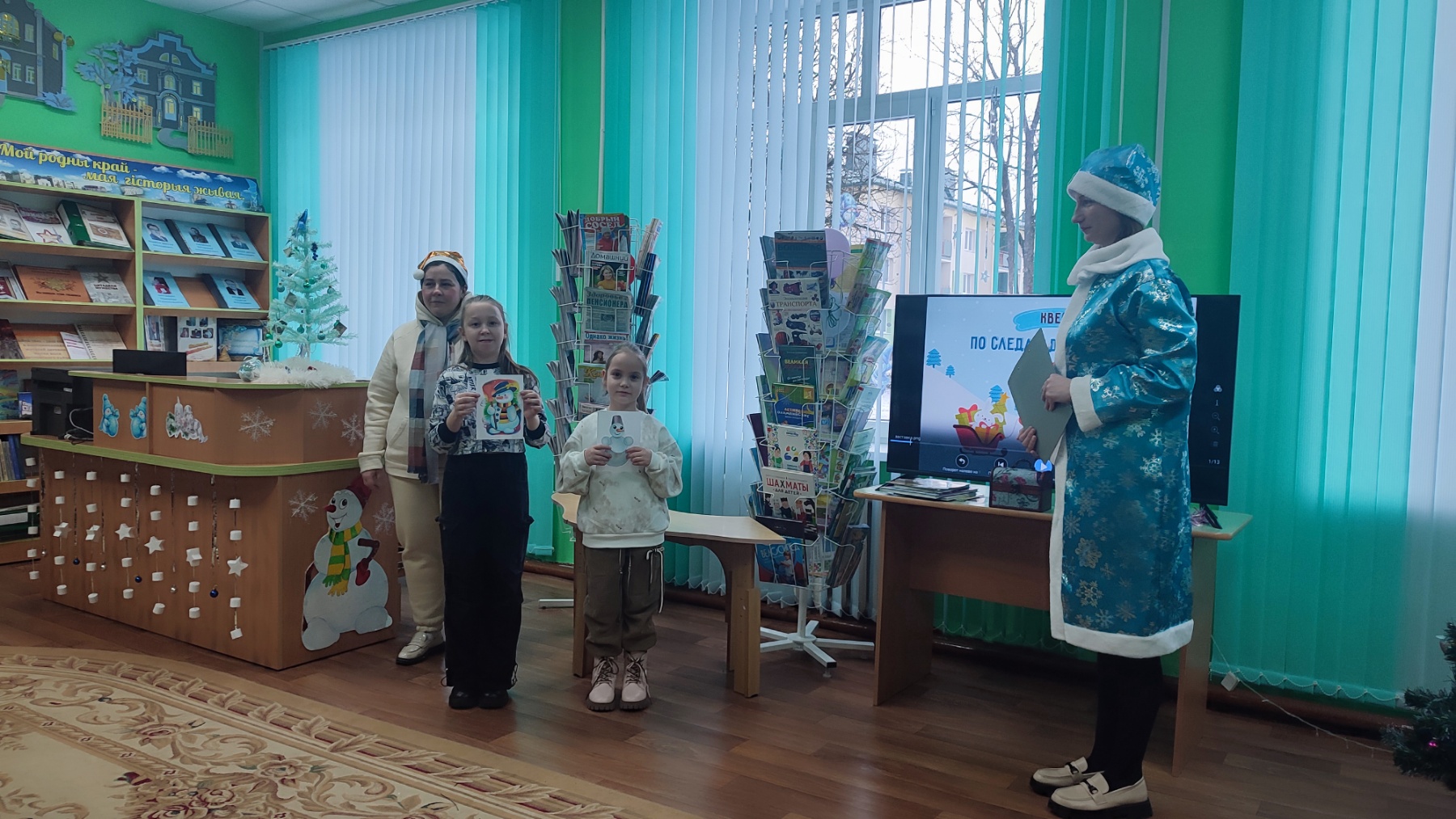 Затем ребята приняли участие в квест-игре «По следам Деда Мороза», которую подготовили для них работники ДУК «Дятловская районная библиотека».