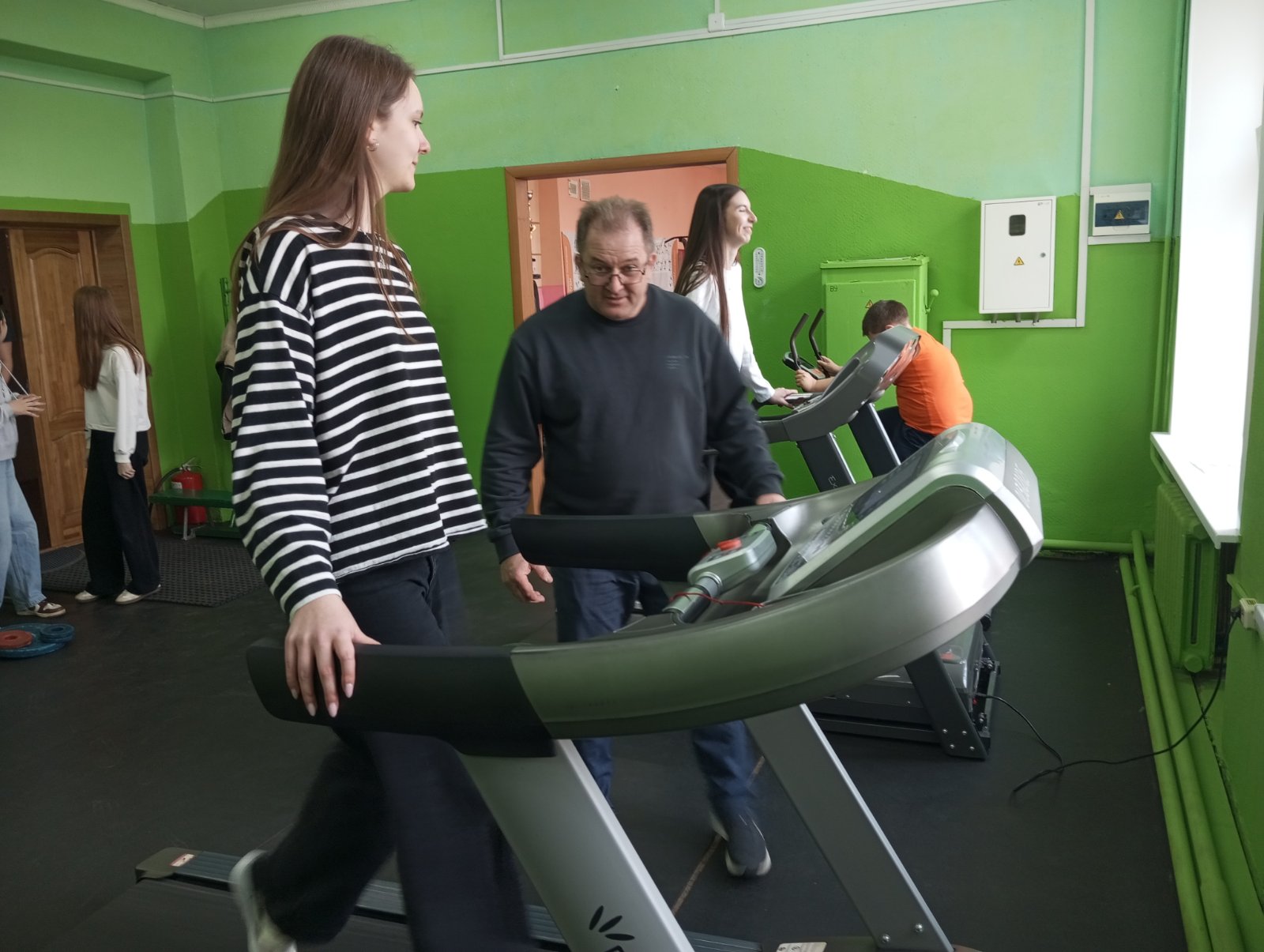Для большинства юношей класса такие занятия систематические, некоторые юноши и девушки посетили зал впервые. В ходе занятия директор спортивной школы Светлана Ивановна Лагута рассказала о пользе занятий на тренажёрах для здоровья человека, а заместитель директора Александр Николаевич Кучинский ознакомил новичков с техникой упражнений. Здорово быть здоровым!