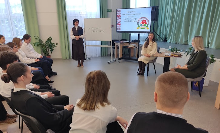 В 9 «Б» классе Павлючик М.Т. организовала обсуждение «Белорусской модели социально-экономического развития»;