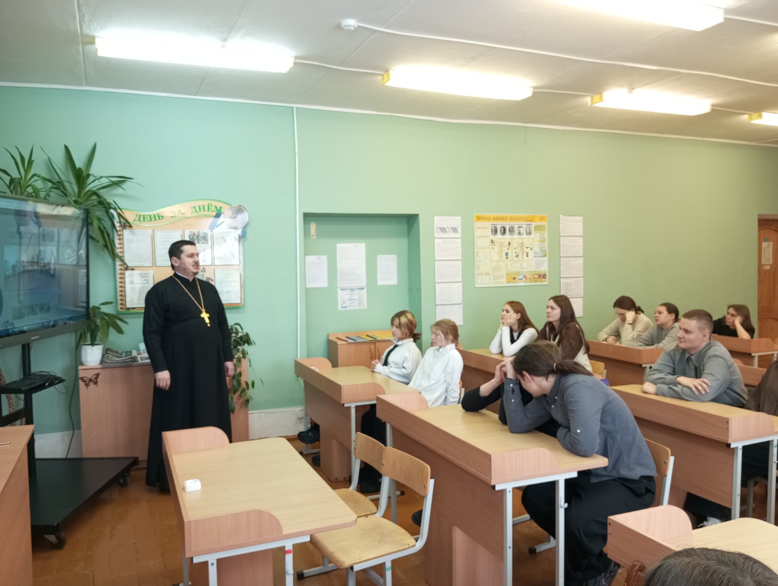 В ходе беседы священнослужитель объяснил учащимся значение веры в жизни современного человека, пожелал, чтобы поступки школьников всегда согласовывались с Божьими заповедями.