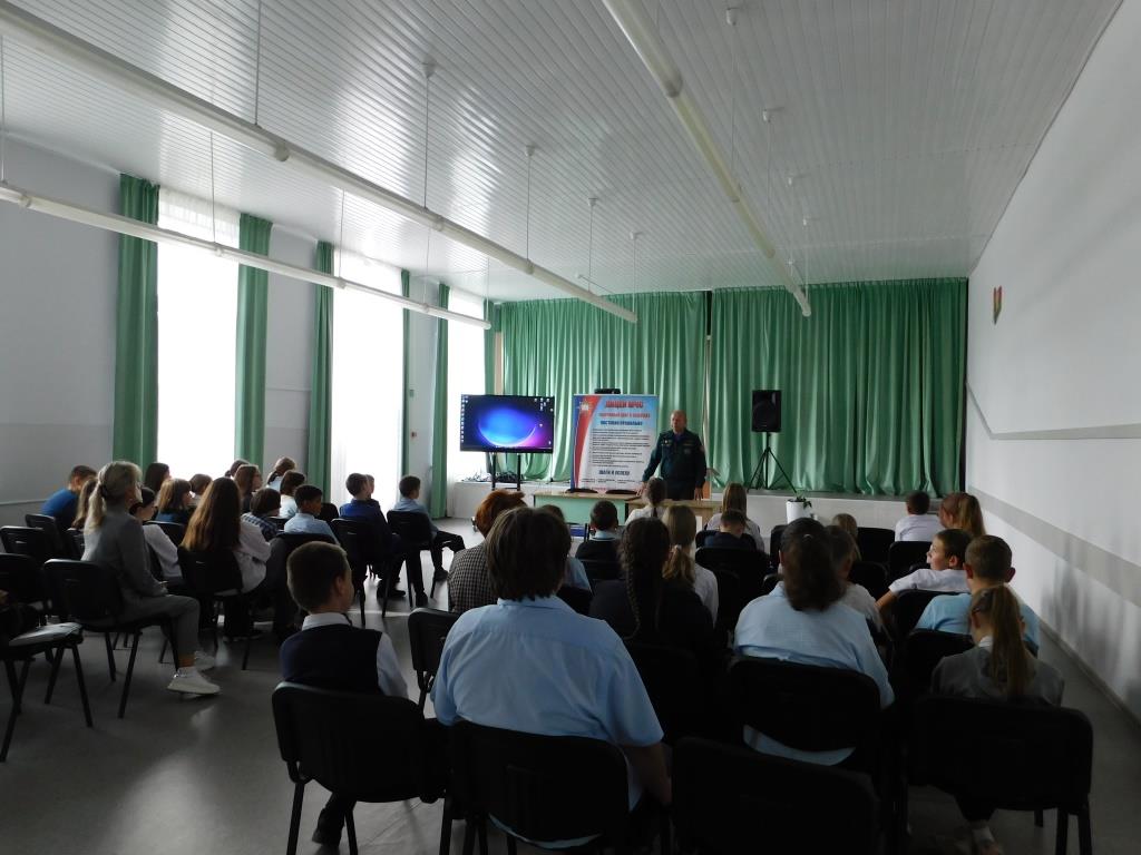 На встречу пришёл заместитель начальника отдела по чрезвычайным ситуациям Дятловского районного отдела МЧС Александр Анатольевич Беленко, который подробно рассказал школьникам о путях поступления в высшее учебное заведение, специфике обучения и будущей профессии спасателя.