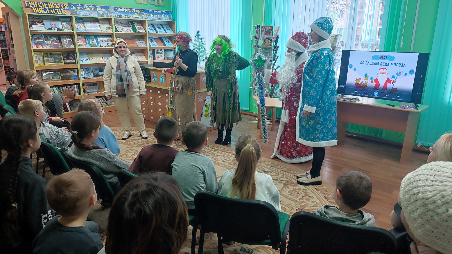 Затем ребята приняли участие в квест-игре «По следам Деда Мороза», которую подготовили для них работники ДУК «Дятловская районная библиотека».