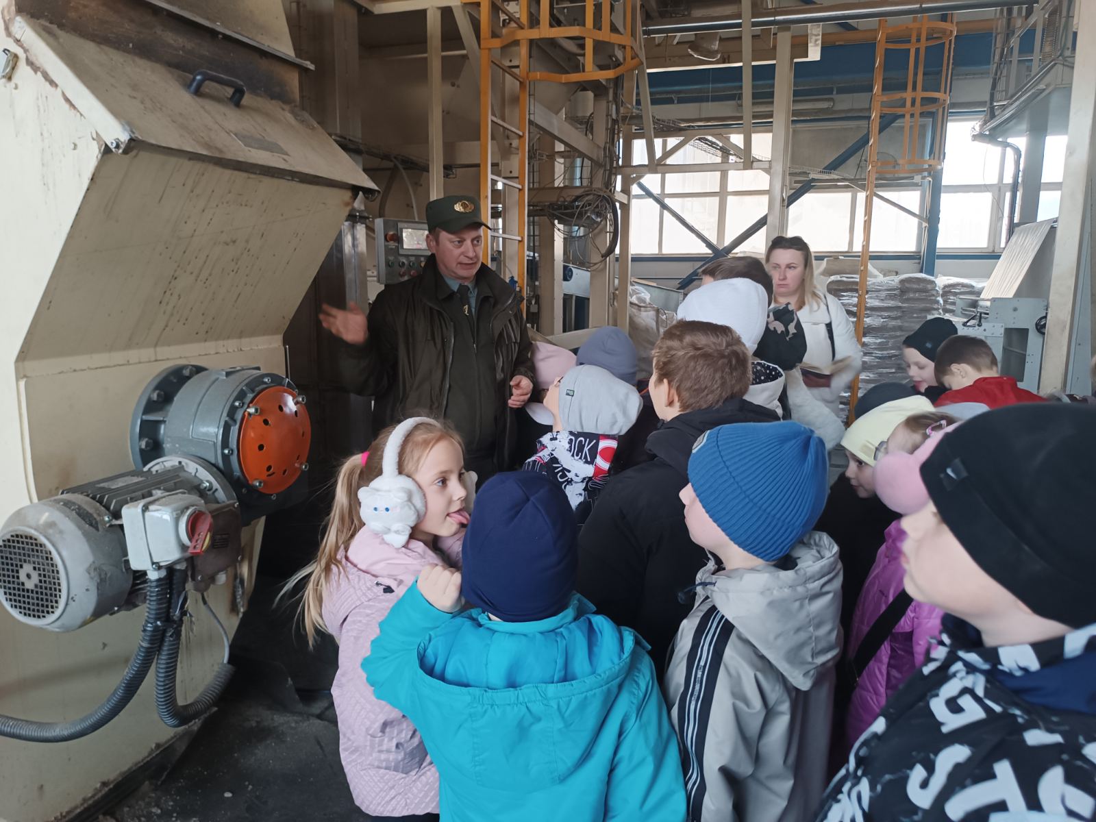 - Пеллетный завод. Школьники не просто услышали, но и своими глазами увидели, как производится современное топливо. Александр Владимирович рассказал о технологии создания топливных гранул.
