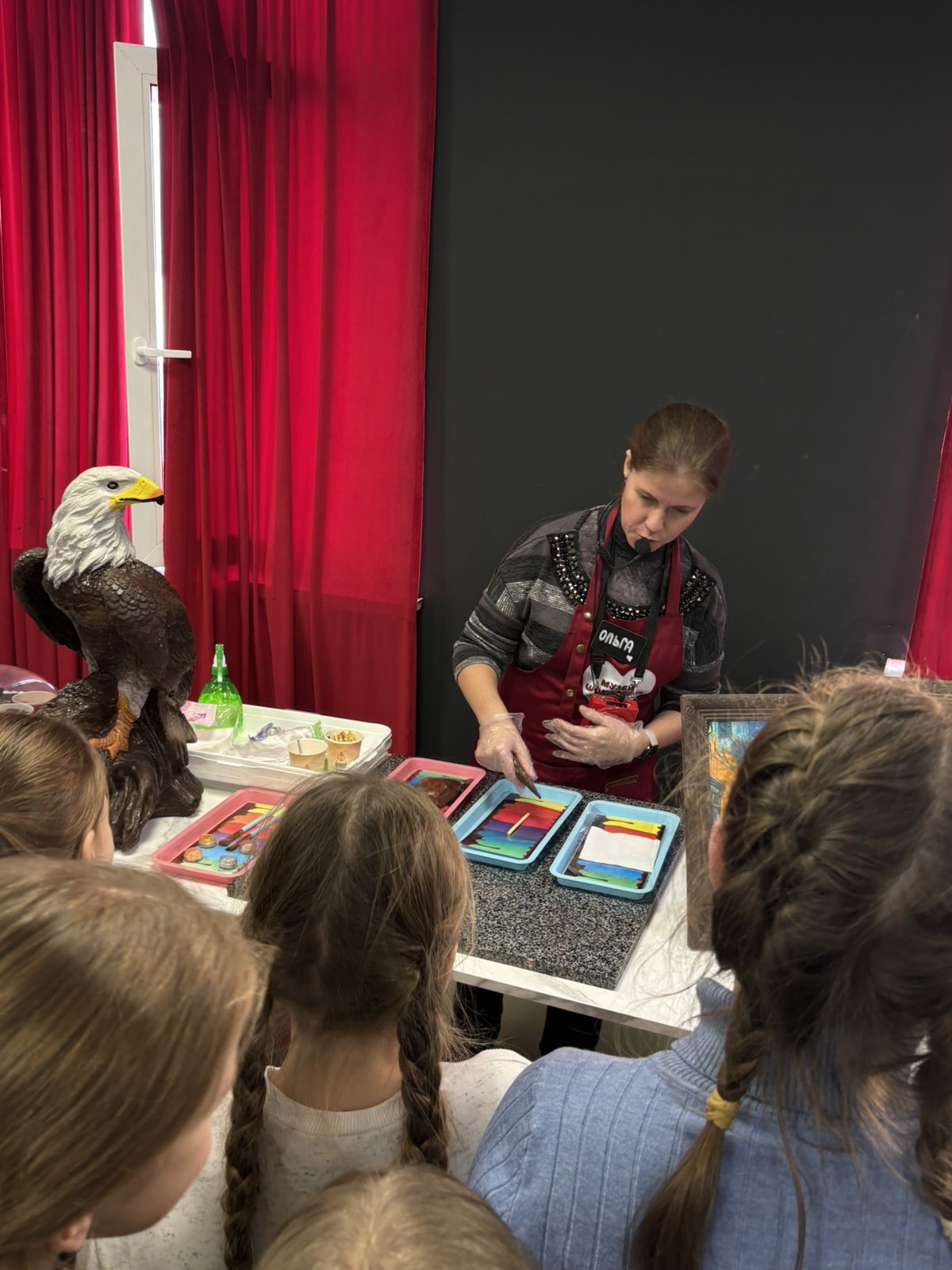 Но самым волнительным этапом стал мастер-класс в творческой мастерской музея. Под чутким руководством кондитеров ребята познакомились с основами работы с шоколадной массой и приступили к созданию собственных сладких шедевров. Фигурки в виде елочек, единорогов, зверушек — каждое изделие получилось уникальным, ведь дети вкладывали в него свою фантазию и старание. Многие с гордостью демонстрировали свои творения одноклассникам, а кто-то даже решил сохранить своё «кондитерское чудо» как память об этом дне.