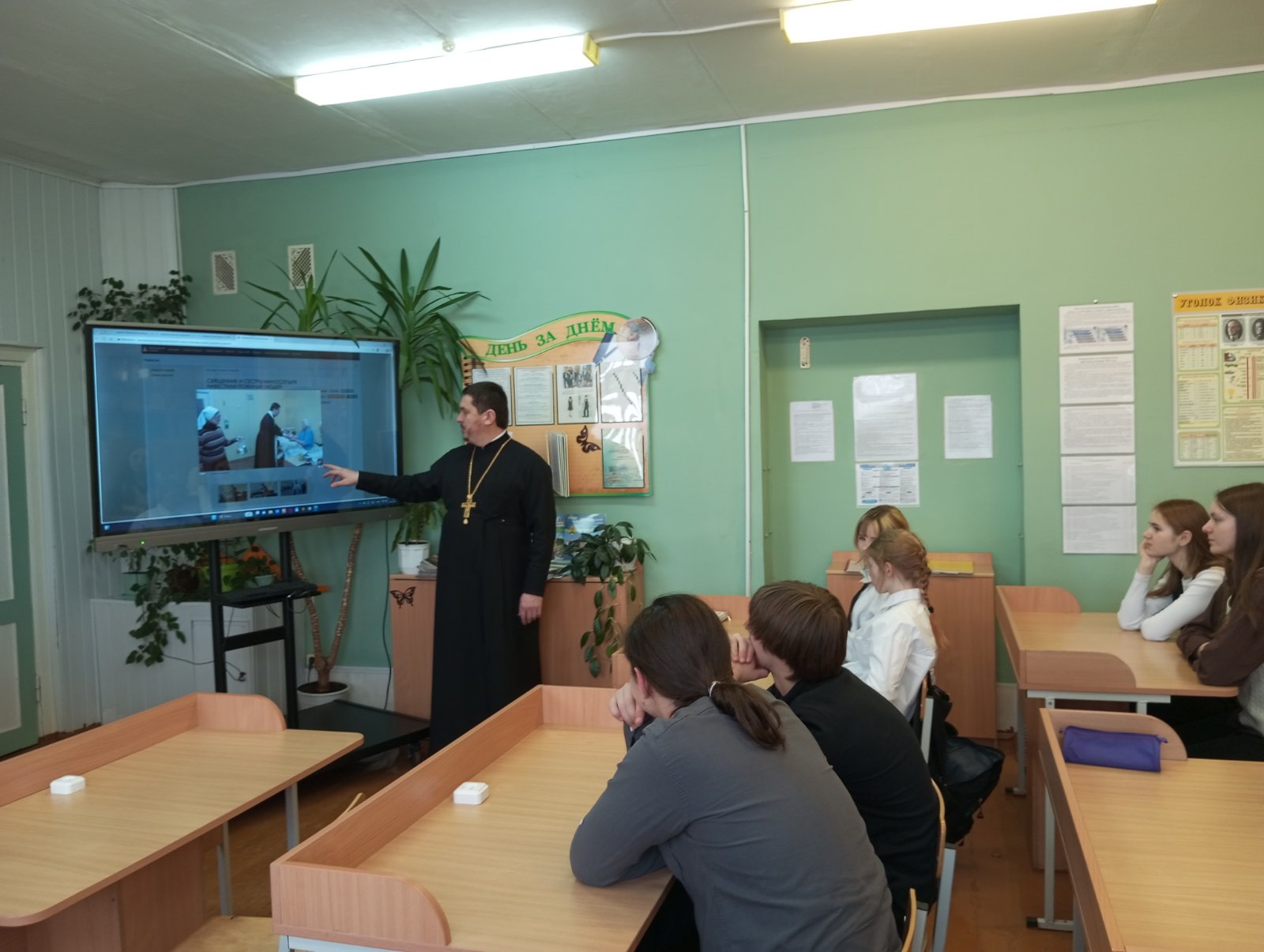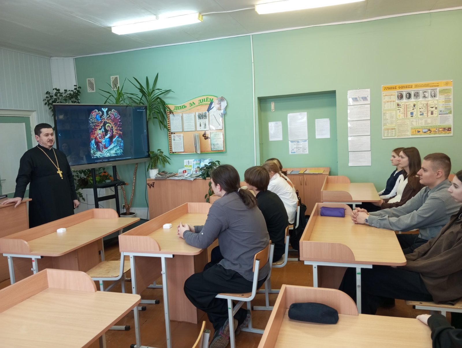 В ходе беседы священнослужитель объяснил учащимся значение веры в жизни современного человека, пожелал, чтобы поступки школьников всегда согласовывались с Божьими заповедями.