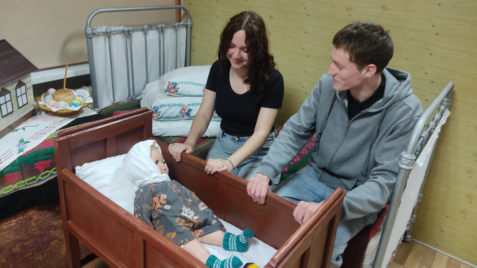 Особое внимание привлекала колыбелька с «малышом», укрытая вышитым рушником. Этот образ стал символом материнской заботы, нежности и безусловной любви — тех ценностей, которые лежат в основе любой крепкой семьи.