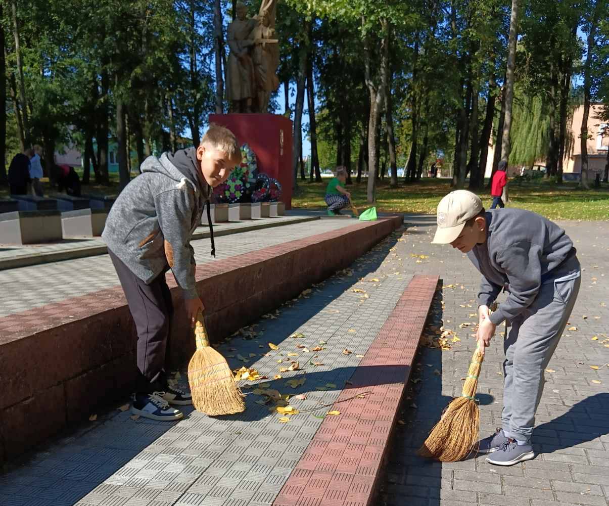 В течение нескольких часов работы активные участники трудовой субботы: привели в порядок двор школы, в д. Ходевляны прошла уборка памятного знака на месте гибели 14 красноармейцев, провели благоустройство памятника Фогелю и Петрову.